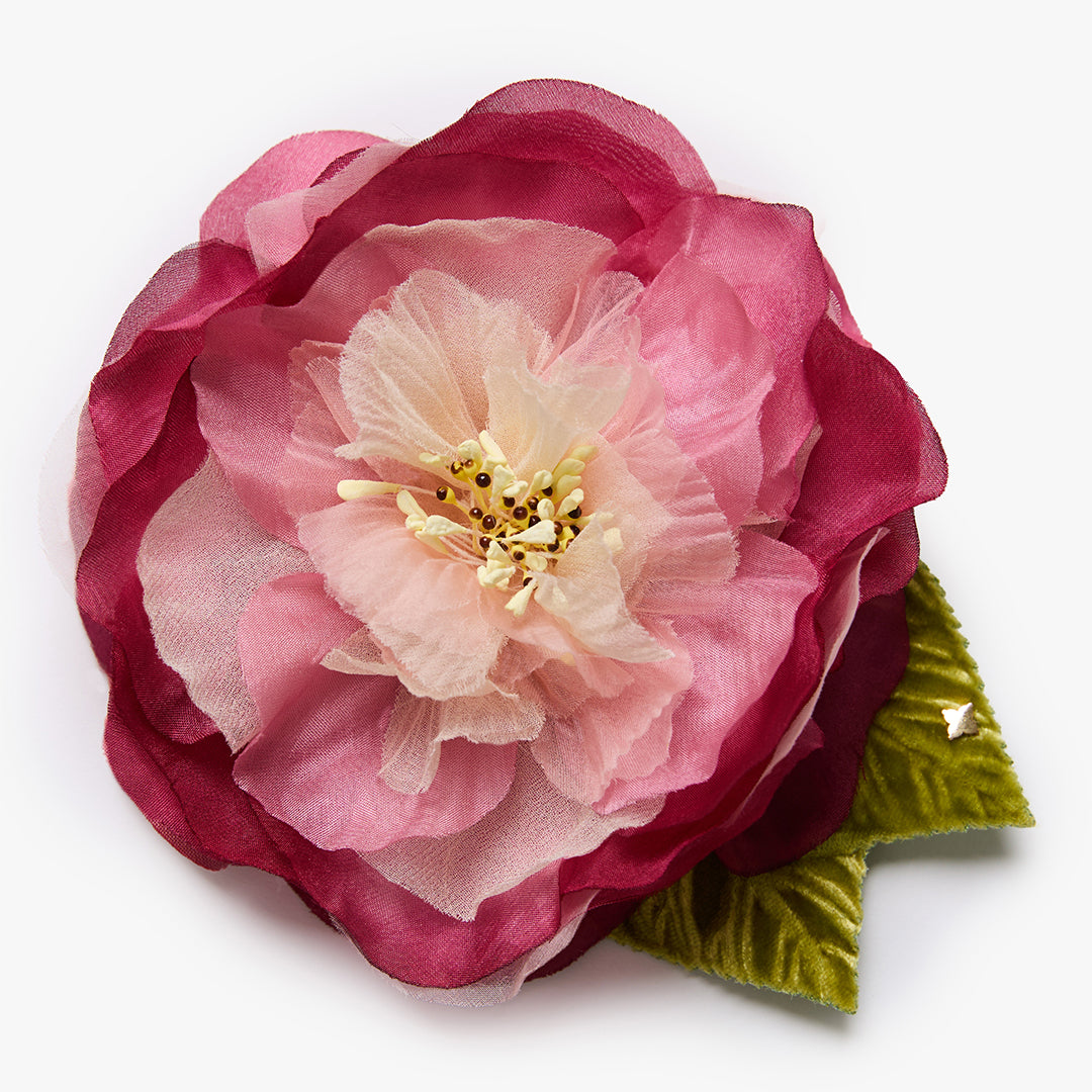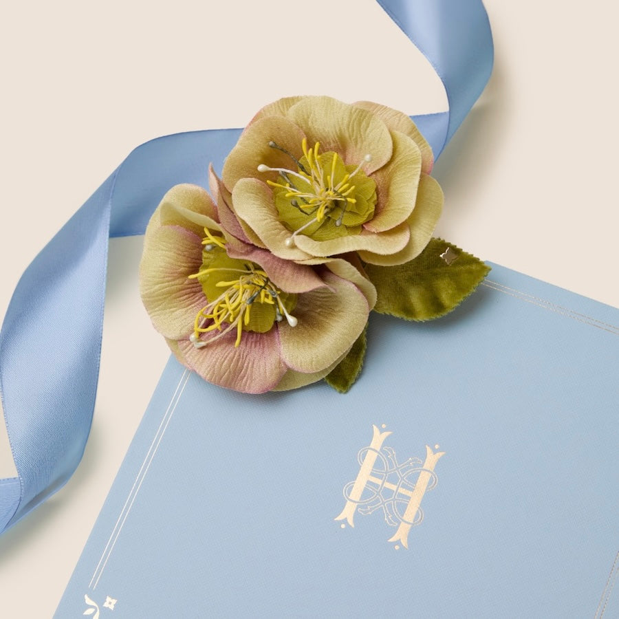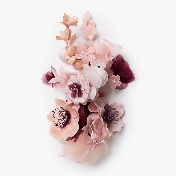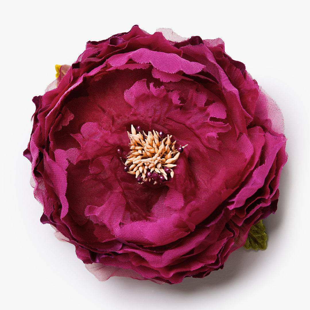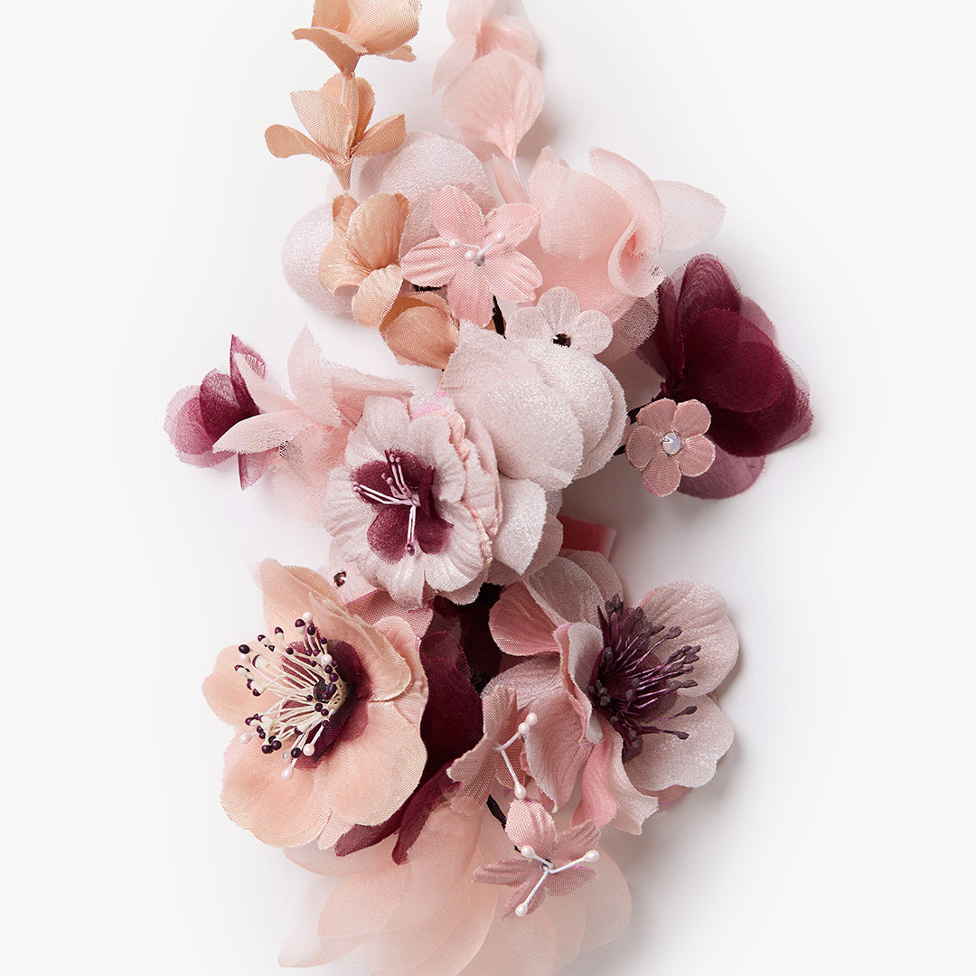 Using only the finest fabrics and materials, every flower and leaf is cut, embossed and delicately assembled by hand in New York.