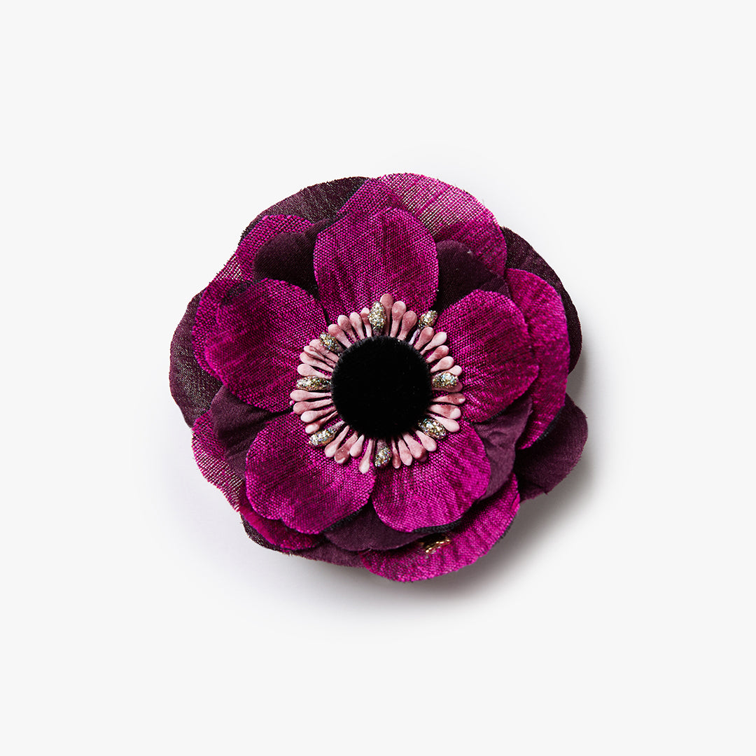 Hand-dyed petals, luxurious fabrics and one-of-a-kind embellishments make Helena Simon floral brooches beautiful works of wearable art.