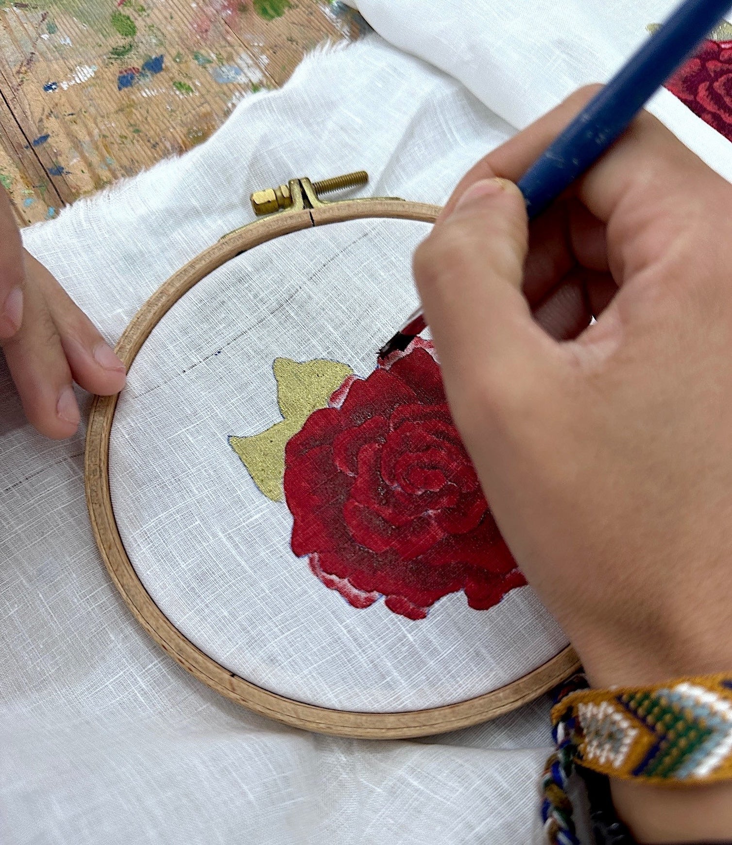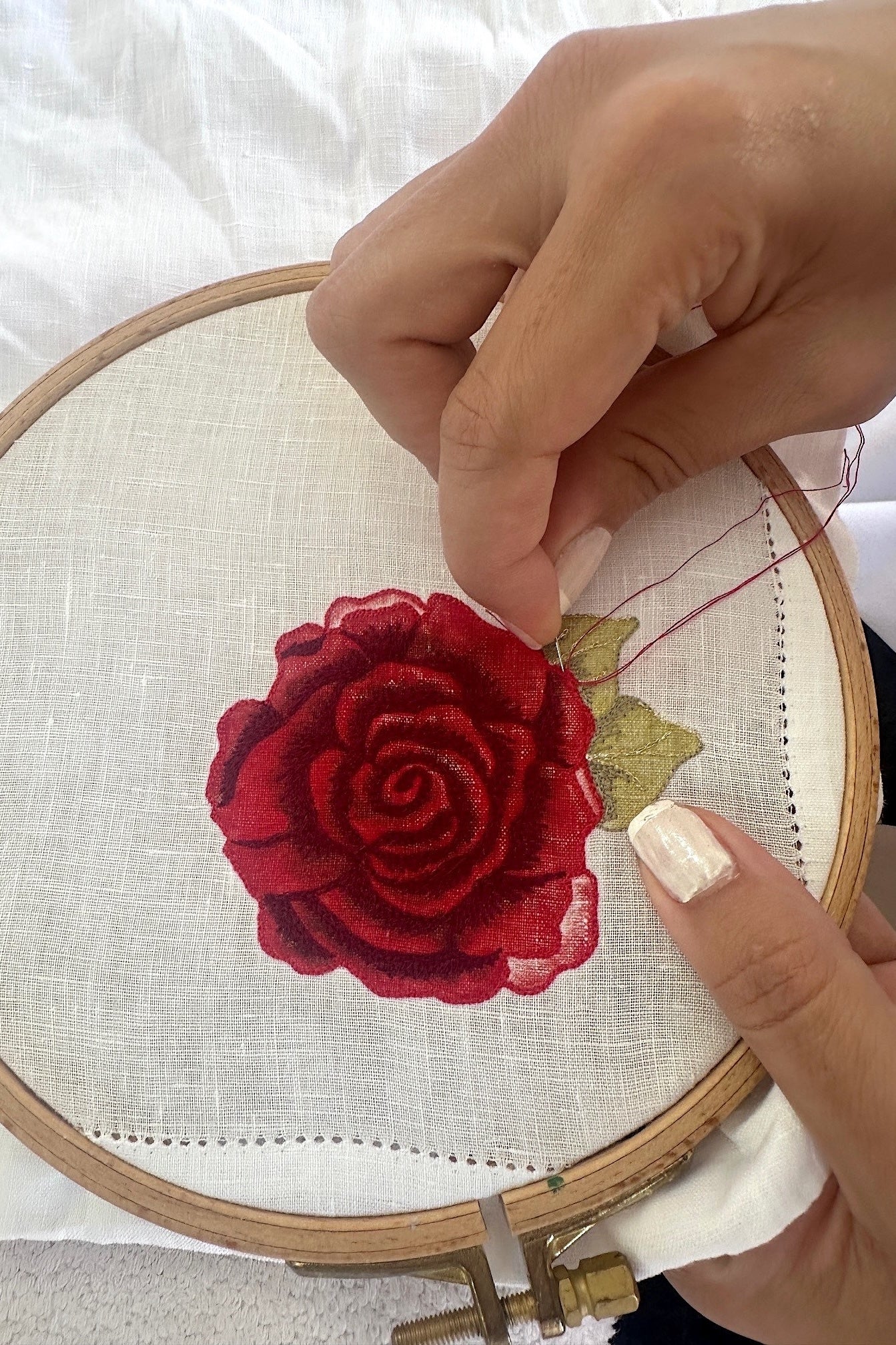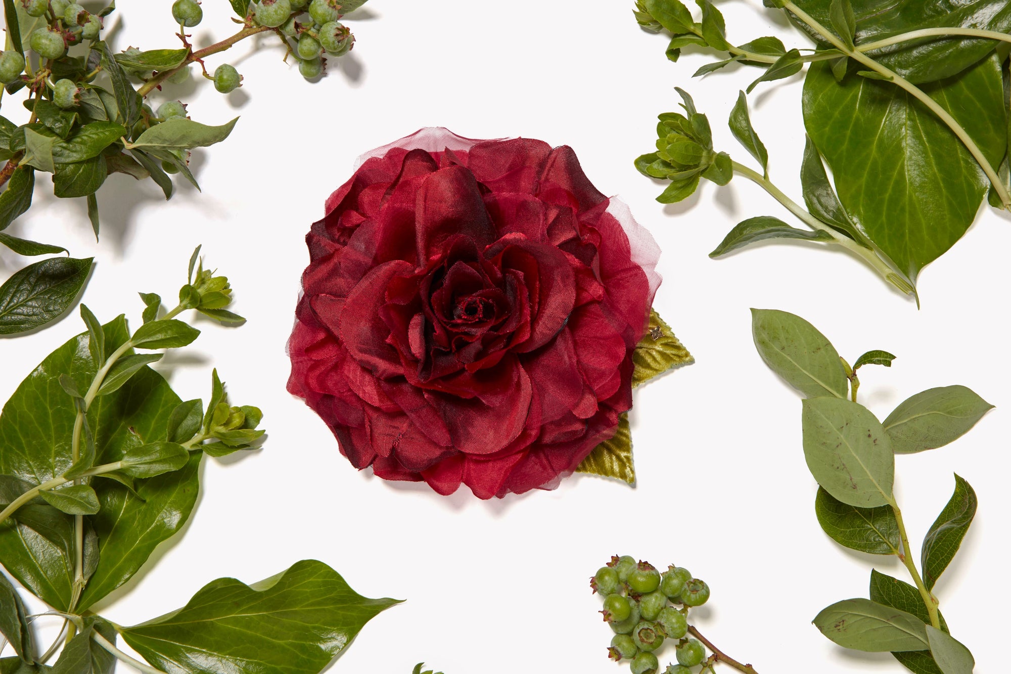 Every red rose was exquisitely hand-embroidered and hand-painted with a meticulous level of detail and consideration. Capturing the rich, dimensional beauty of our Red Rose brooch was not an easy feat, but E. Braun succeeded in spades.