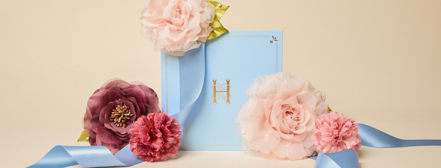 Each brooch will arrive on a velvet pillow inside a gold-embossed pale blue box making for a lovely gift presentation or a keepsake to beautifully display your own floral brooch.