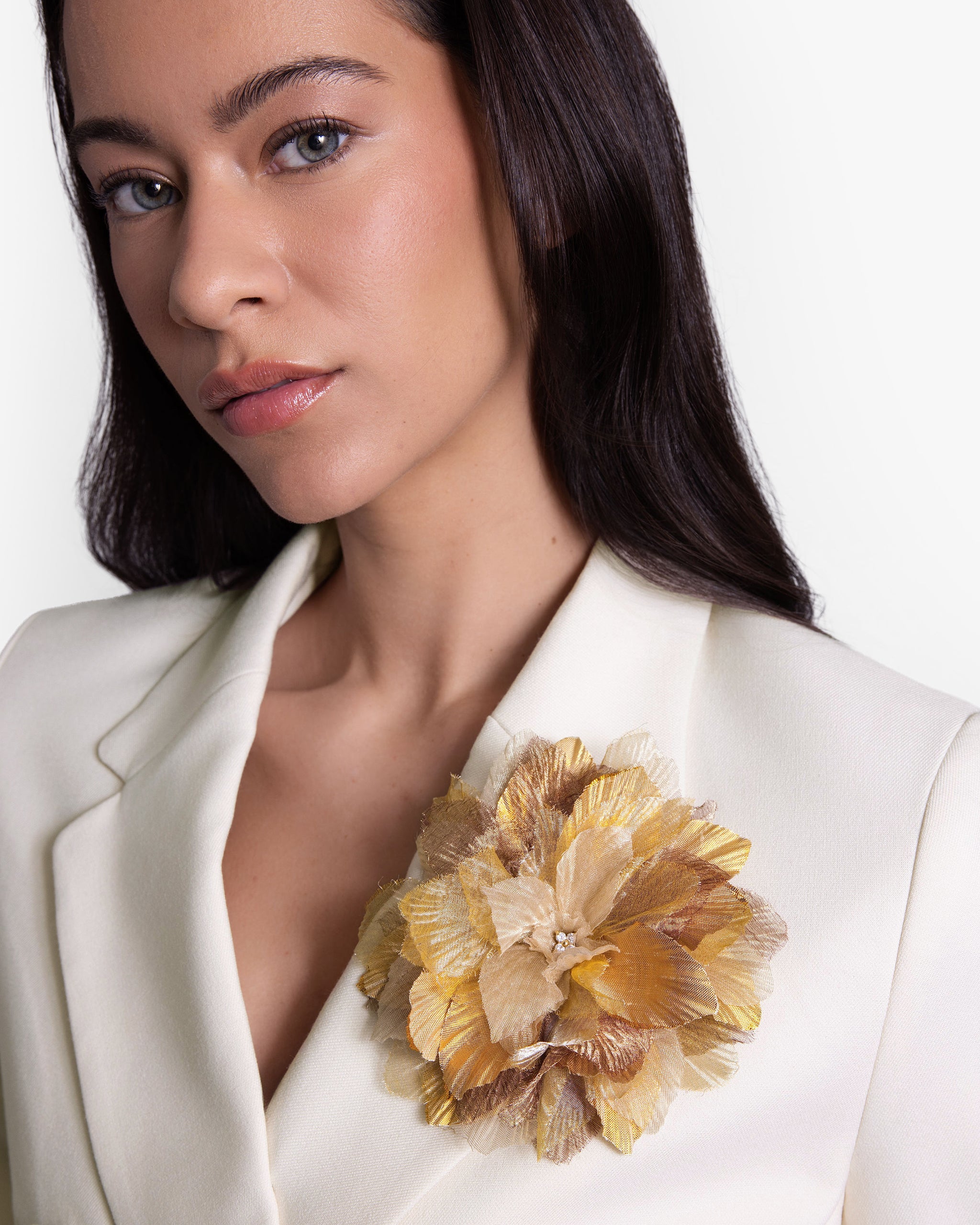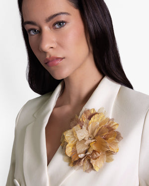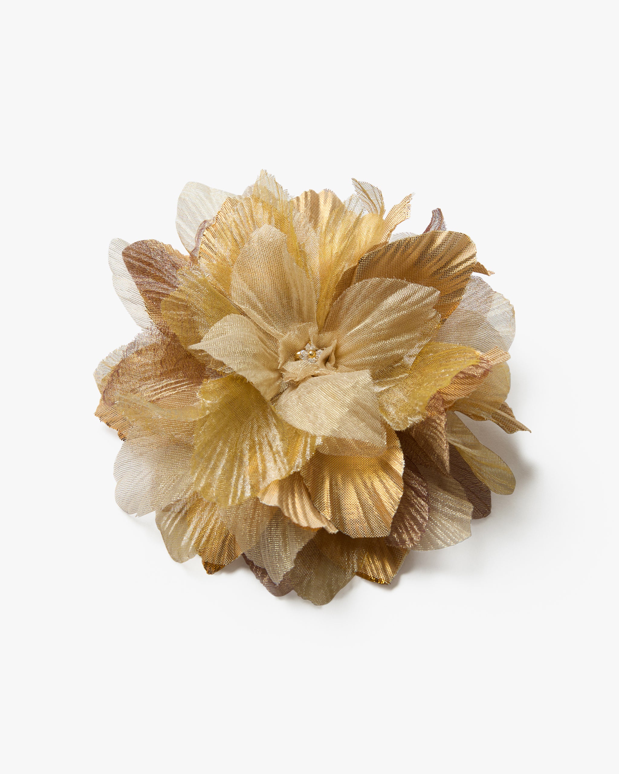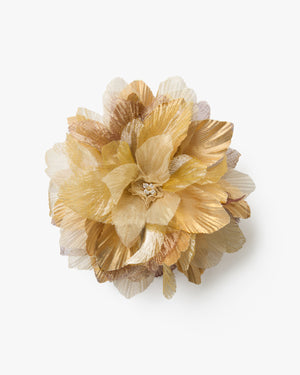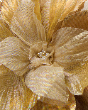 Gold metallic silk shantung and metallic silk organza petals