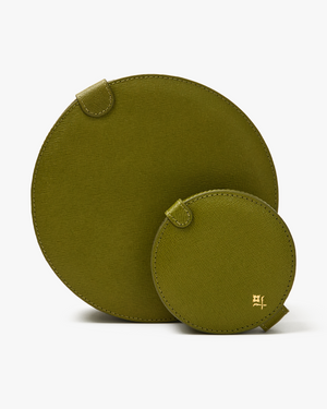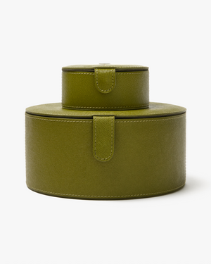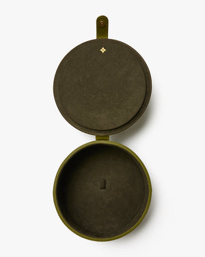 With a circular silhouette in hard-wearing crossgrain leather, this case will look just as stylish in your suitcase as displayed on your dressing room table.
